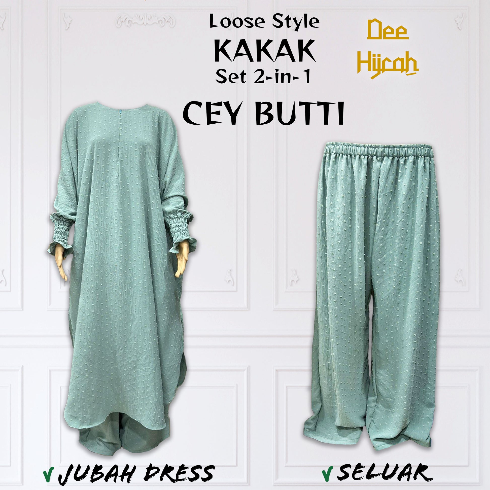 Set KAKAK CEY BUTTI 2in1 - Jubah Dress + Seluar - One size fit all Plus Size Cey Clothing